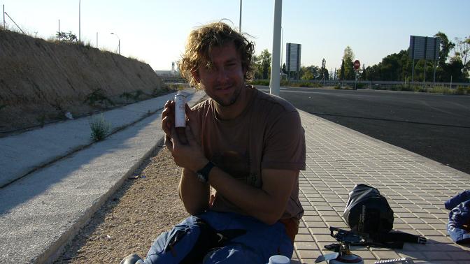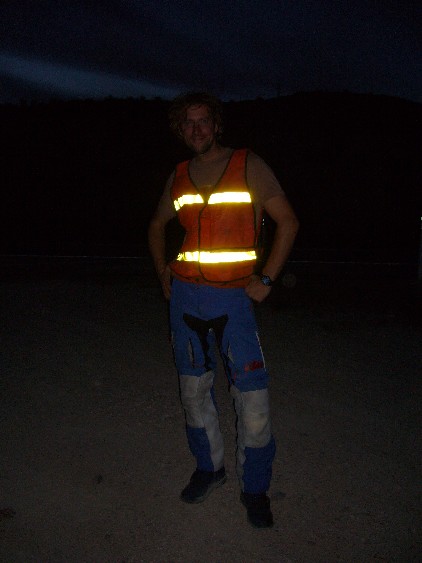 Freitag Abend, kurz vor Alicante /Spanien, haben wir dann unsere erste Panne. Chris hat einen Vorderradplatten und wir merken das unsere Luftpumpe nicht funktioniert. "Nochmal Glück gehabt" denken wir uns, denn hätten wir das erst mitten in der Wüste festgestellt ...