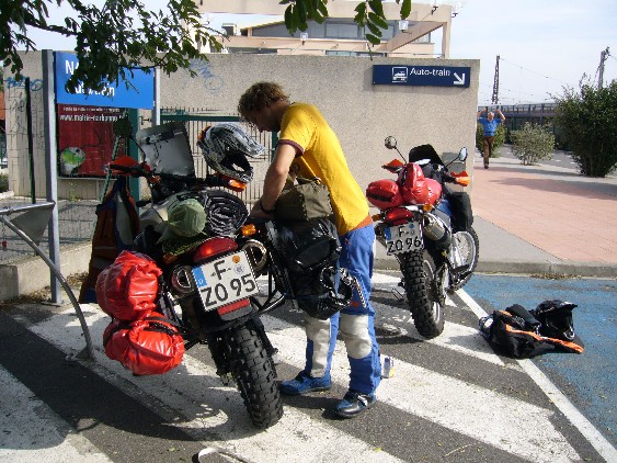 Donnerstag früh kommen wir mit mit dem Reisezug in Narbonne an. Chris packt unser Gepäck wieder auf unsere Motorräder und los geht es Richtung Afrika.