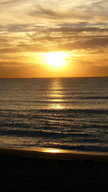 Wir warten seit zwei Tagen auf Becky und Bill. Da wir nichts mehr von ihnen gehört haben, beschliessen wir morgen früh nach Tarifa zu fahren, um dort die Fähre nach Tanger/Marokko zu nehmen. Außerdem wird hier das Wetter gerade schlecht und langsam haben wir auch genug von Malaga. Obwohl ja so am Strand zu wohnen nicht schlecht ist ...vor allem wenn wir morgens mit unseren Kaffetassen in der Hand diesen Sonnenaufgang geniesen dürfen... aber wir wollen ja nach Afrika.