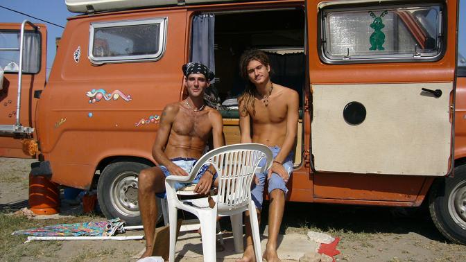 Thorsten (links) hat sich gegen ein gut bürgerliches Leben in Deutschland entschieden und lebt seit mehren Jahren in Spanien, seit einigen Monaten hier in seinem Ford Transit. Josef (rechts) ist mit dem Fahrrad aus Slowenien gekommen und auch hier hängen geblieben. Beide verdienen ihr Lebensunterhalt indem sie Ketten basteln und diese an Touristen verkaufen.