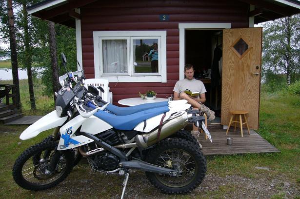 Da wir auch mal Pech mit dem Wetter haben, verbringen wir unsere letzte Nacht in Schweden, in einer kleinen Holzhütte.