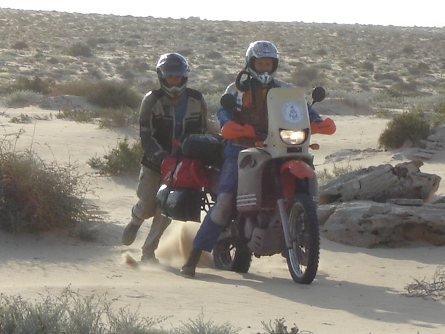 Nachdem wir Chris Motorrad wieder aus dem Sand gebuddelt haben ...