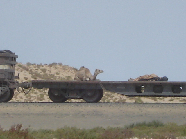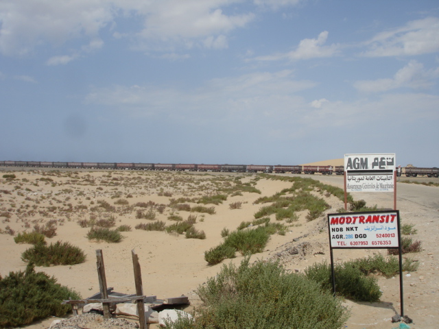 Wir hängen den Campingplatzbesitzer ab und fahren Richtung Nouadihbou. Vorbei geht es an Dromdarherden und wir sehen den einstmals längsten Erzzug der Welt,