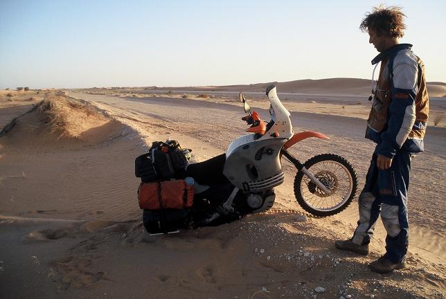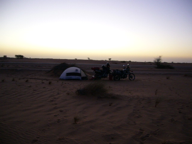 In Mauretanien ist es dann auch endlich mal richtig warm (in der Sonne so um die 70 Grad). Unterwegs schaue ich ab und zu mal an mir runter, um mich zu vergewissern das aus meinem Motorrad keine Flammen schlagen, denn so glüht es an meinen Beinen...