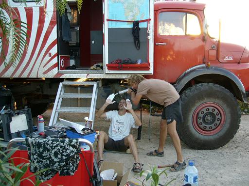 Weiter geht es dann zu unserem super Campingplatz in der Nähe von Agadir, auf dem wir ja schon waren. Dort haben wir mal wieder richtig Glück mit unseren Nachbarn Ilona, Marc und Wolfi (www.orli.ws). Die drei haben Zeit bis Juli und machen in dieser Zeit mit ihrem roten Zebra Afrika unsicher.