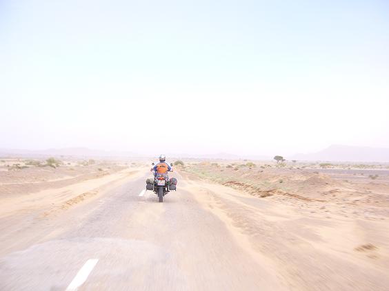 ... und plötzlich fahren wir - schon lange nicht mehr gehabt - in einem Sandsturm, der diesmal aber nicht so heftig ist und uns nicht gleich von der Strasse fegt.