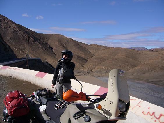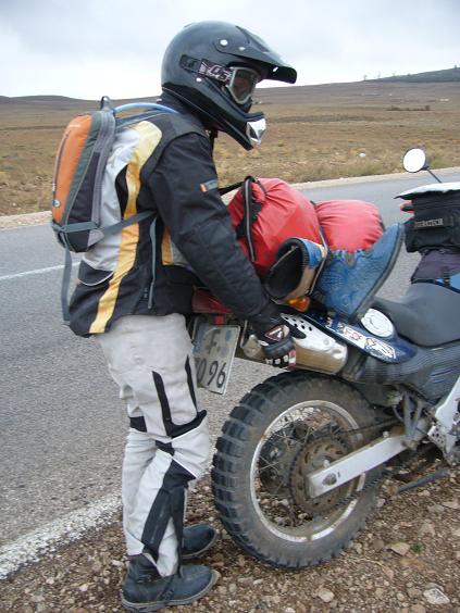 Nachdem wir erfolgreich ohne zu erfrieren über den Pass fahren, nehmen wir die nächste Möglichkeit zum halten wahr (schauen auf unser Thermometer das jetzt 6 Grad anzeigt, also waren es auf dem Pass so ca. 0 Grad) und tauen uns erst mal an unseren heißen Auspuffen auf...