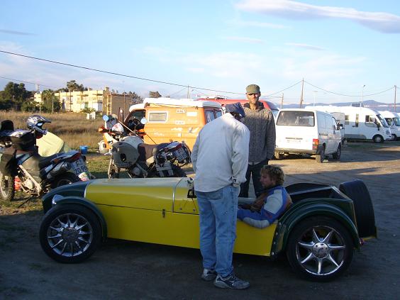 Tatsächlich, als wir ankommen, sitzt Thorsten gemütlich vor seinem Ford Transit und sonnt sich. Wir halten vor ihm und er schaut uns etwas verwirrt an, dann merkt er das er nicht träumt und wir müssen alle lachen ... so früh hat er uns nicht zurück erwartet.
